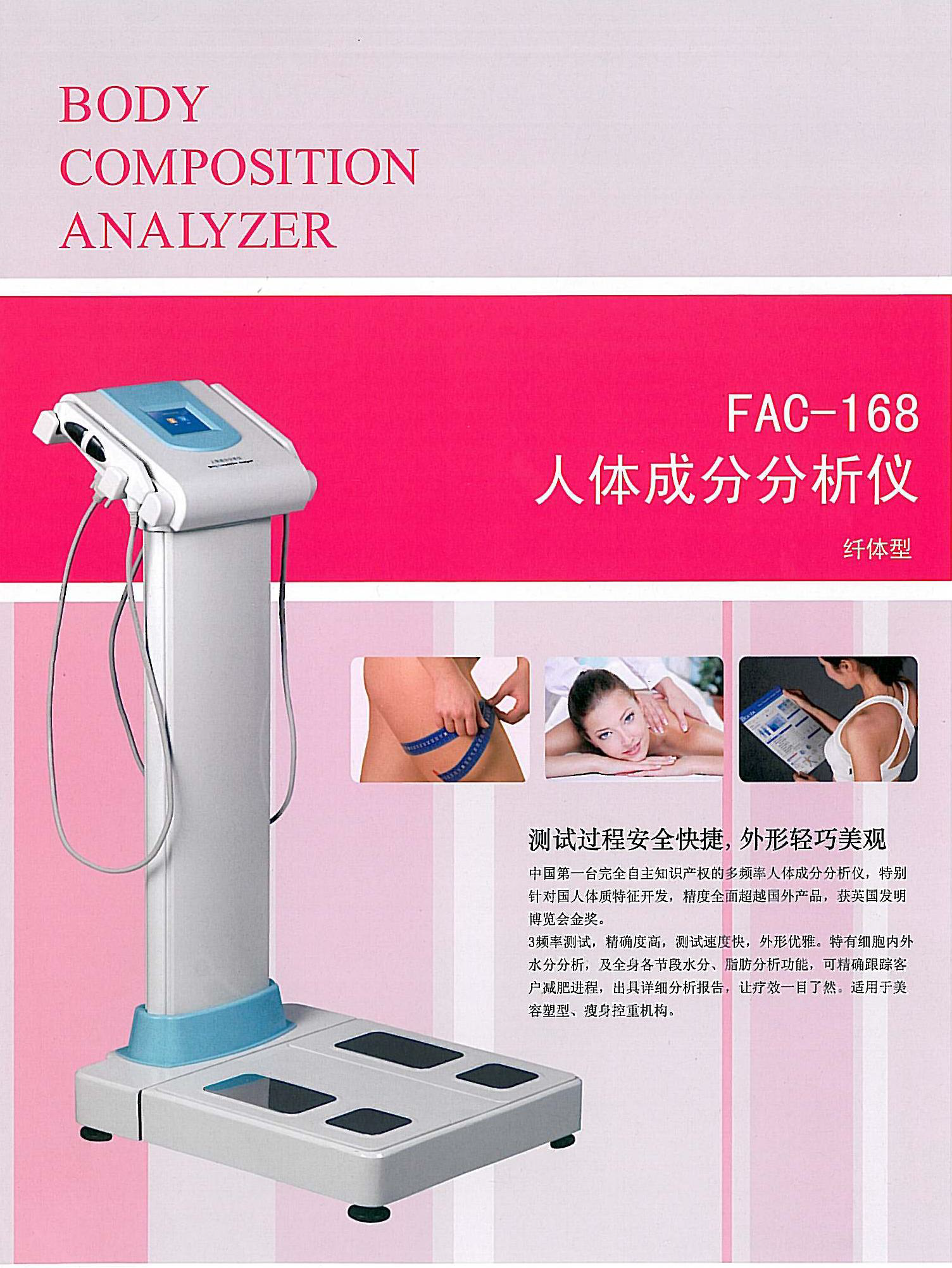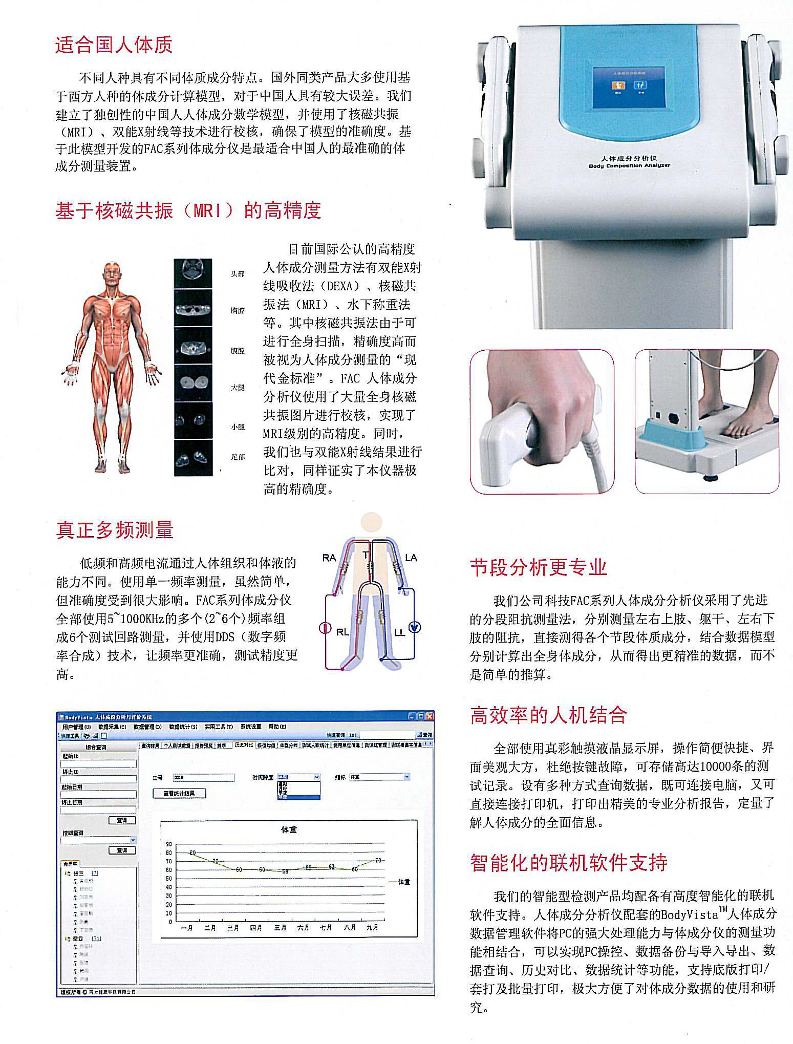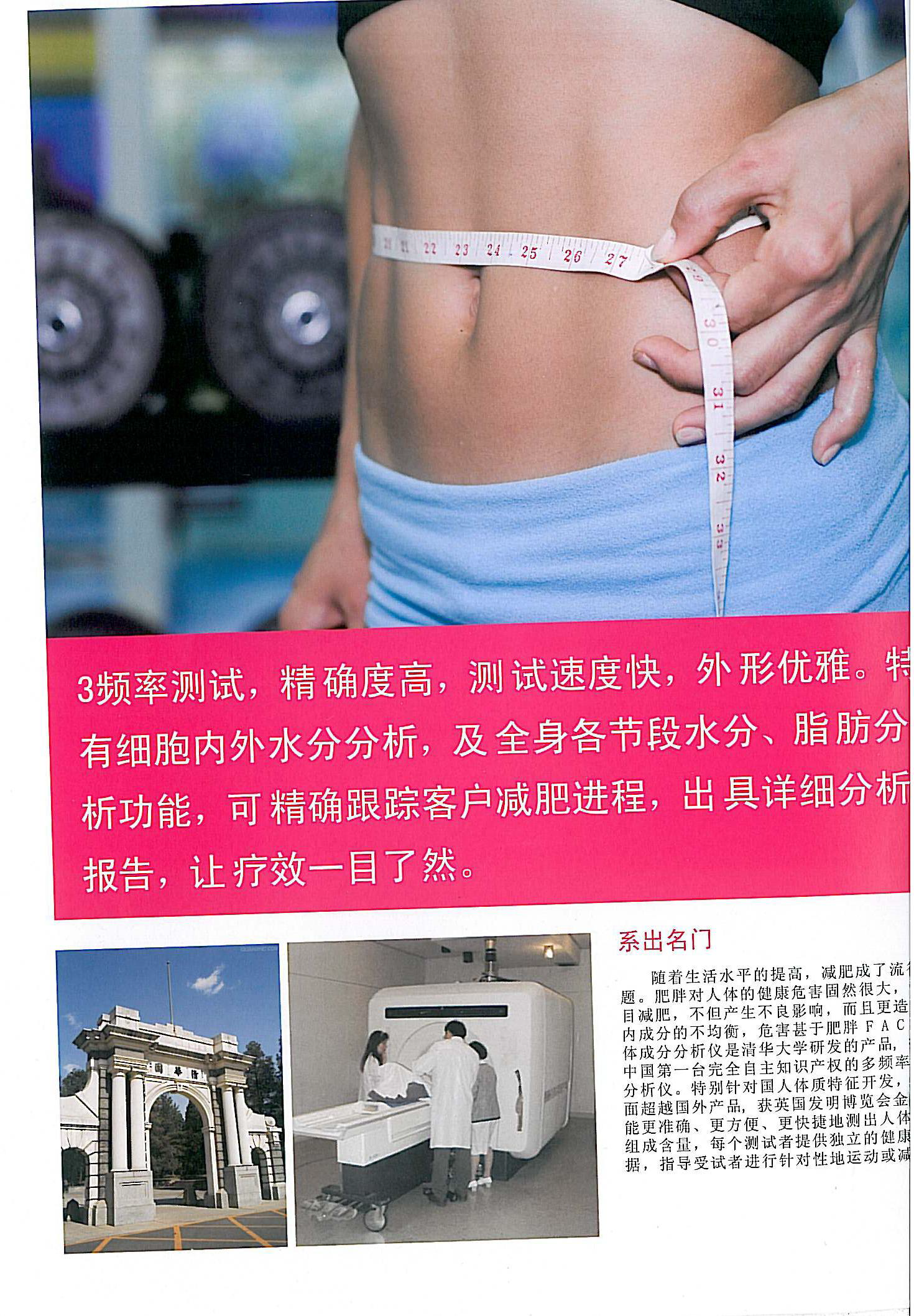 水肿分析:水肿系数,总水分率、水肿等级。 内脏脂肪分析:躯干脂肪总量、内脏脂肪水准。 体重管理:标准体重、体重控制、脂肪控制量、肌肉控制量。 肥胖分析:肥胖等级、体脂百分比等级、腰臀比类型。 营养评估:三大营养素水准、基础代谢率。 节段分析:节段水分、节段脂肪。